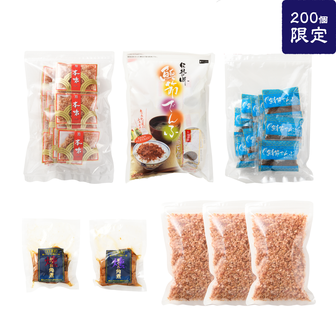 毎年、お世話になった関係者の方々へ贈っていた非売品の特別セットを、通販サイトOPEN記念として限定販売いたします。高級品「枯れ節の削りぶし」をはじめ、人気のでんぶ2種、そして「どこで買えるの?」とお問合せが殺到した角煮を、贅沢に詰め合わせました。日頃の感謝の気持ちを込めた、大変お得なセットです。おひとり様(1アカウント)3セットまでの限定販売となります。この貴重な機会を、どうぞお見逃しなく。